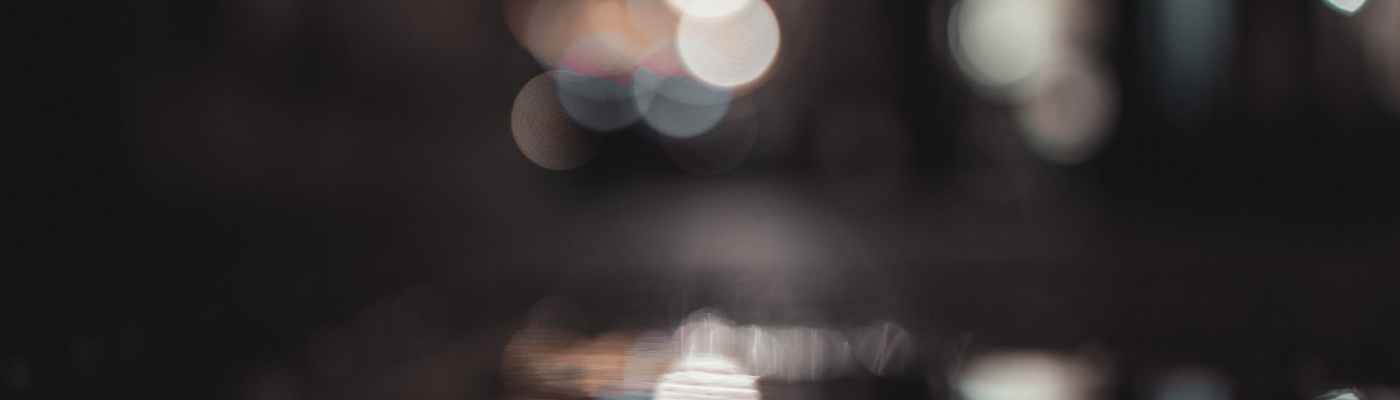 Lights reflect in the puddles gathered at your feet from the rainstorm that swept through earlier in the day.